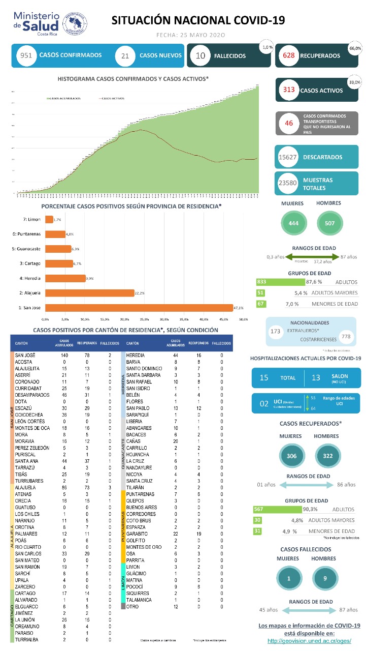 21 casos nuevos por COVID-19: 951 en total #SomosACR.net