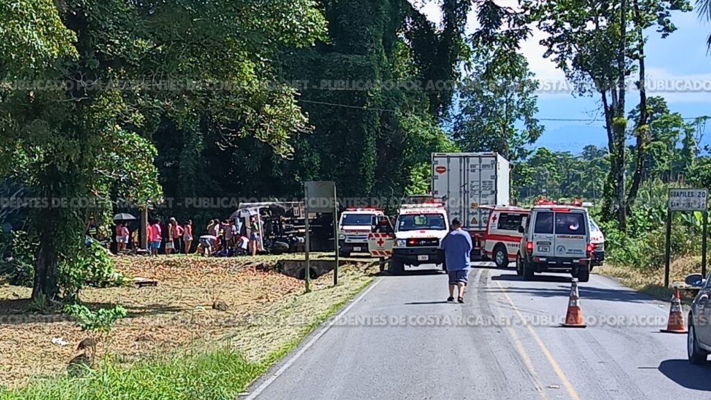 𝙋𝙤𝙧 𝘼𝙘𝙘𝙞𝙙𝙚𝙣𝙩𝙚𝙨𝙙𝙚𝙘𝙤𝙨𝙩𝙖𝙧𝙞𝙘𝙖.𝙣𝙚𝙩. Esta tarde, un accidente de tránsito cerca de la entrada a la comunidad de Cubujuquí, en el distrito de Horquetas de Sarapiquí, en la Ruta 4, dejó varios heridos. El incidente involucró el choque de un tráiler contra un camión de carga liviana, que terminó volcándose fuera de la vía.