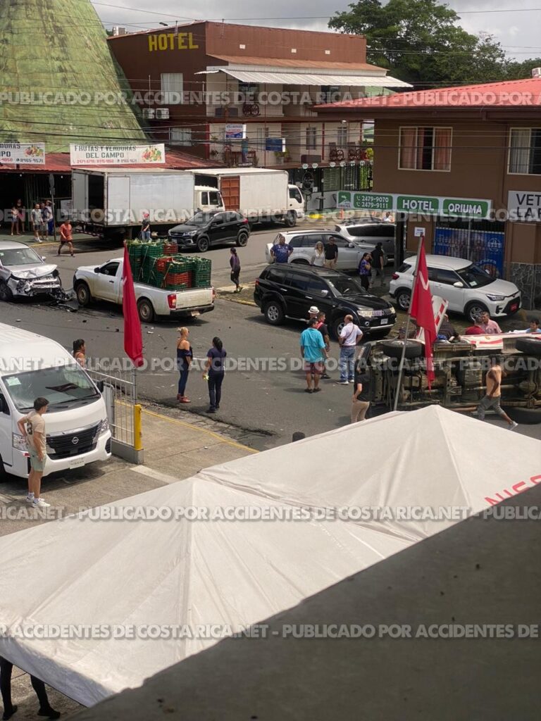 𝙋𝙤𝙧 𝘼𝙘𝙘𝙞𝙙𝙚𝙣𝙩𝙚𝙨𝙙𝙚𝙘𝙤𝙨𝙩𝙖𝙧𝙞𝙘𝙖.𝙣𝙚𝙩. Una ambulancia de la Cruz Roja, la 1877, colisionó y volcó en pleno centro de Fortuna de San Carlos, específicamente al costado norte del Banco Nacional. El accidente se produjo mientras la unidad, conducida por una funcionaria de apellido Durán, trasladaba a una paciente con una emergencia médica.