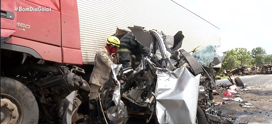 La información preliminar es de un accidente que involucró a 5 vehiculos en total, 3 camiones, un autobús y una camioneta y un automovil en el km 86 de la BR 153, en Porangatu.Municipio de Brazil.