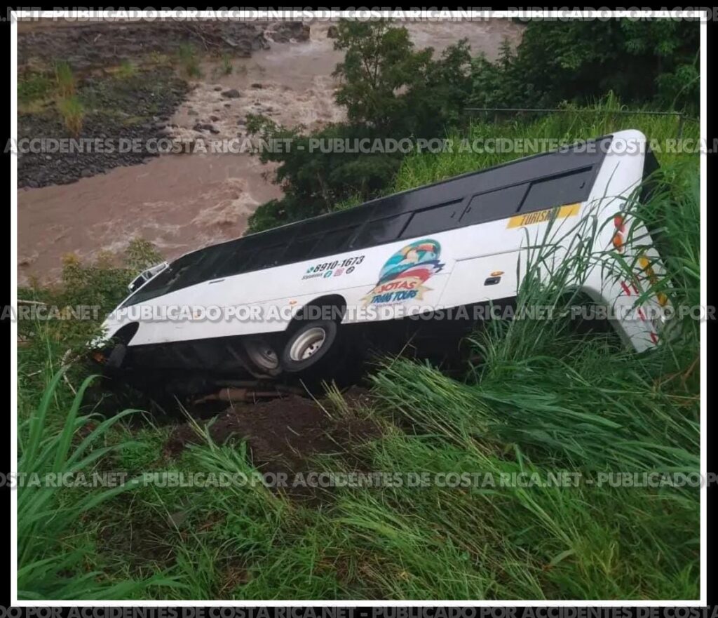 Un autobús cayó al margen del río Barranca la tarde de este viernes, en las cercanías del puente del mismo nombre, en Puntarenas.