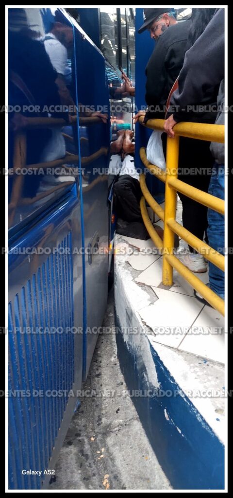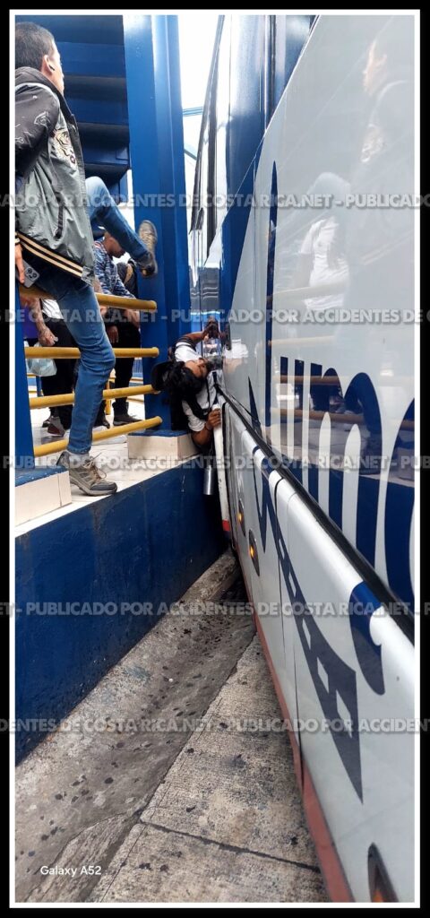 Un hombre de aproximadamente 55 años fue trasladado de urgencia a la Clínica Carlos Durán luego de resultar prensado por un autobús de la empresa Lumaca contra una columna estructural dentro de una terminal de buses en San José.