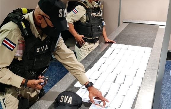 En un trabajo conjunto llevado a cabo en el Aeropuerto Internacional Juan Santamaría, ubicado en la provincia de Alajuela, la Policía Aeroportuaria de la Dirección del Servicio de Vigilancia Aérea (SVA) del Ministerio de Seguridad Pública y autoridades judiciales detectaron cheques ocultos en el equipaje de un pasajero.