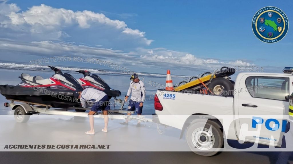 La operación se venía efectuando desde ese día por mar y tierra con diversos recursos de la Policía Turística, el Servicio Nacional de Guardacostas y la Cruz Roja Costarricense, entre los que se encuentran una lancha interceptora, una patrulla, una moto acuática, una ambulancia y un vehículo de operaciones de la Cruz Roja.