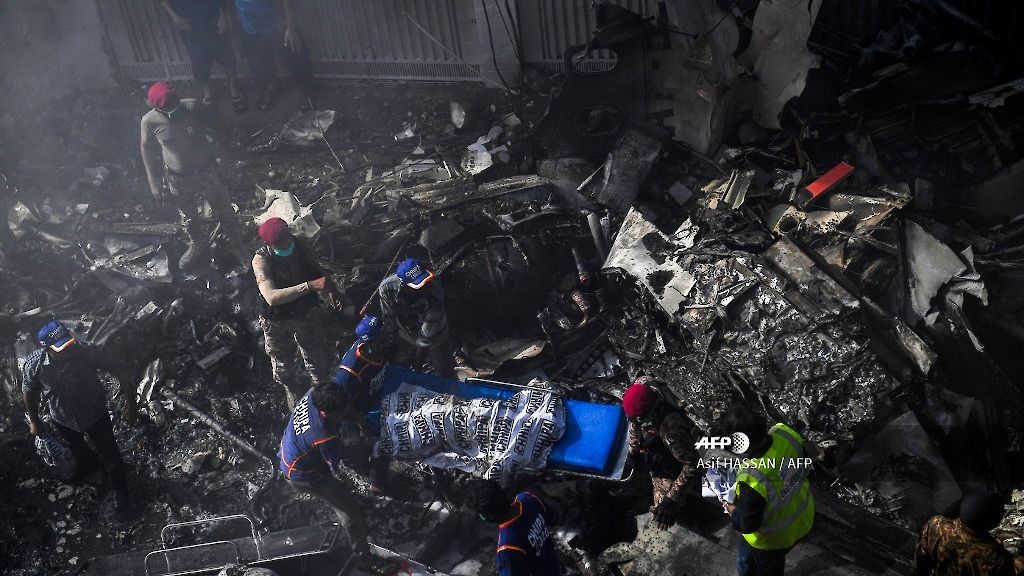 Varias ambulancias estaban llevando a vecinos heridos por el impacto y las explosiones a distintos hospitales de Karachi. Las primeras imágenes muestran una enorme humareda, coches y motos en llamas y, más adelante, a los bomberos intentando apagar los restos del avión, esparcidos sobre edificios hundidos. El aparato siniestrado, un Airbus 320, tenía menos de quince años y habría sido arrendado por PIA a una empresa china. Model Town es uno de los barrios más seguros de una megalópolis conocida por su violencia, debido a la proximidad del aeropuerto y zonas residenciales de personal militar y de seguridad.