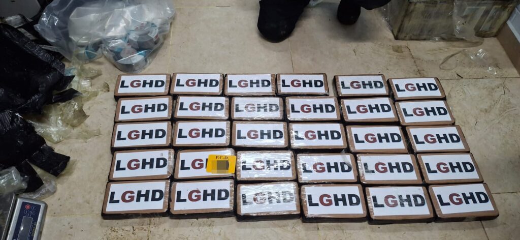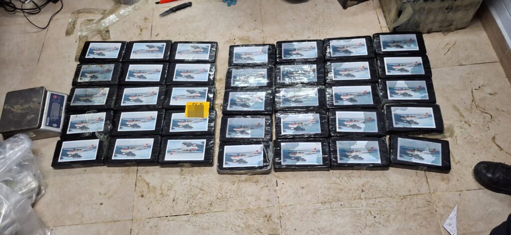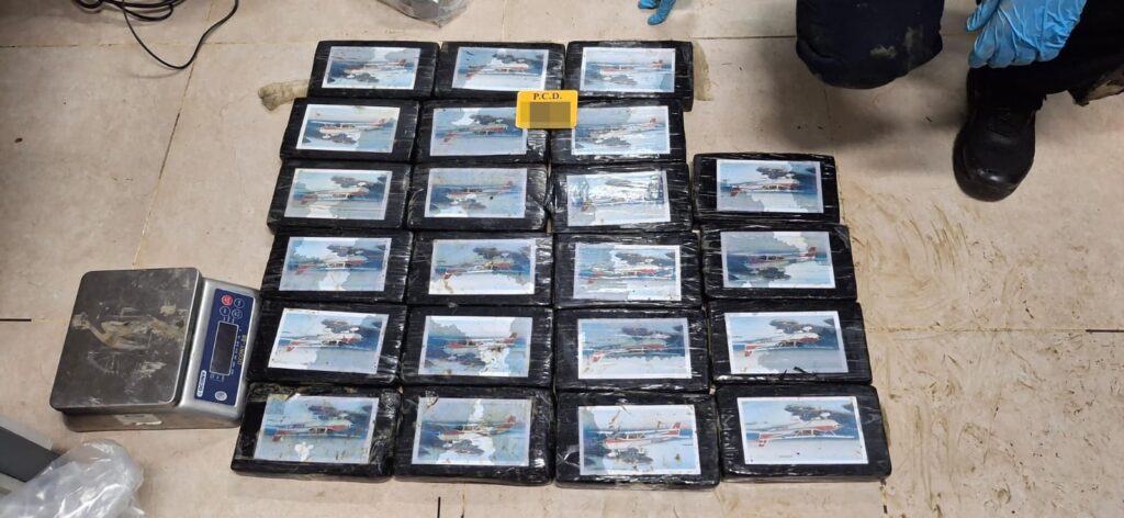 Los agentes de la PCD decomisaron un total de 309 paquetes con cocaína de aproximadamente un kilo cada uno, así como 543 dólares.