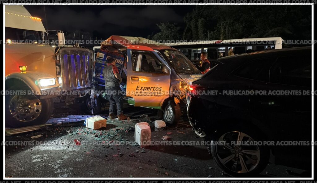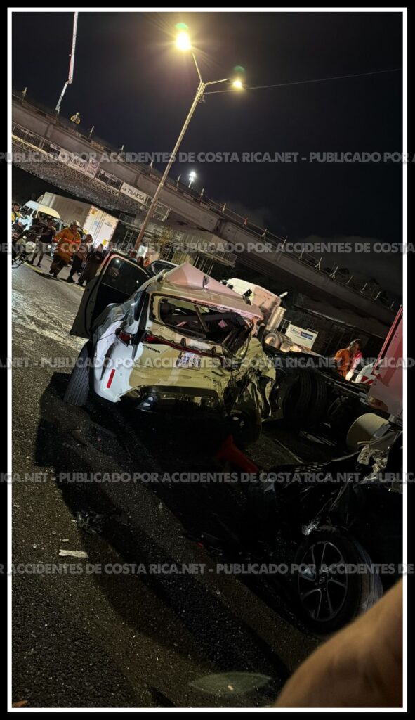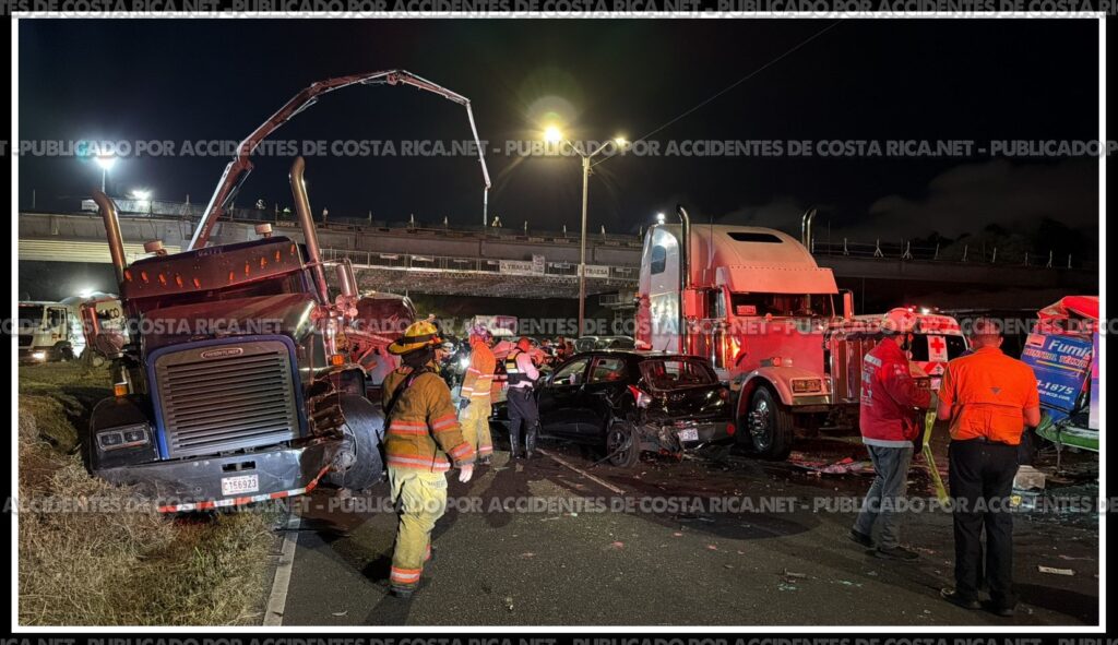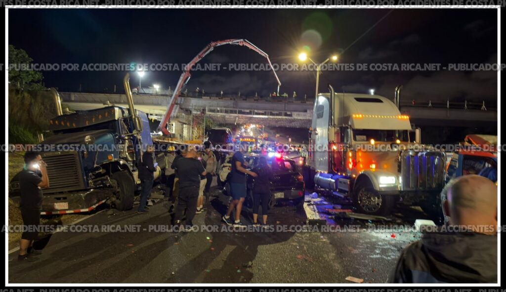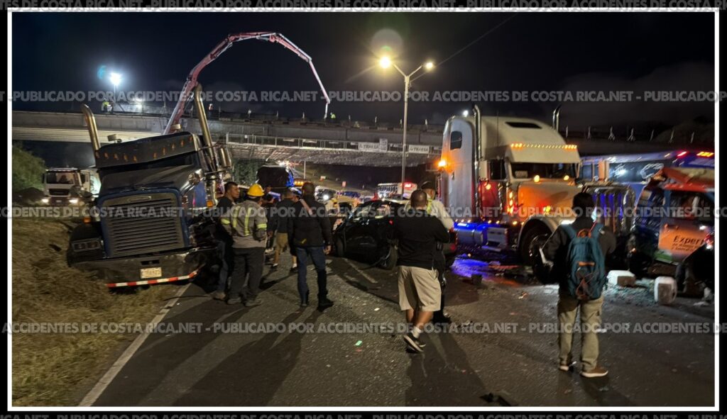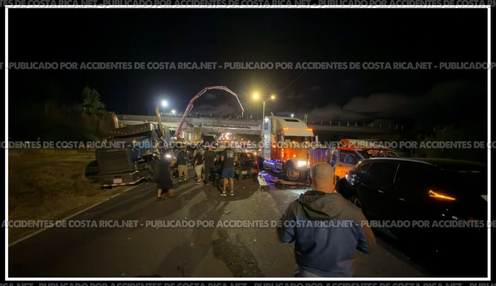 Un aparatoso choque múltiple quedó registrado en video la noche de este jueves sobre la carretera General Cañas, en Heredia, sector de Ulloa, específicamente en el puente en construcción del Castella, en la Ruta 1.