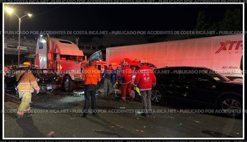 Para la atención de la emergencia se movilizaron cinco unidades de la Cruz Roja Costarricense: una de rescate, dos avanzadas y dos básicas, que trabajaron en la liberación del paciente prensado, la estabilización de los heridos y la coordinación de los traslados.