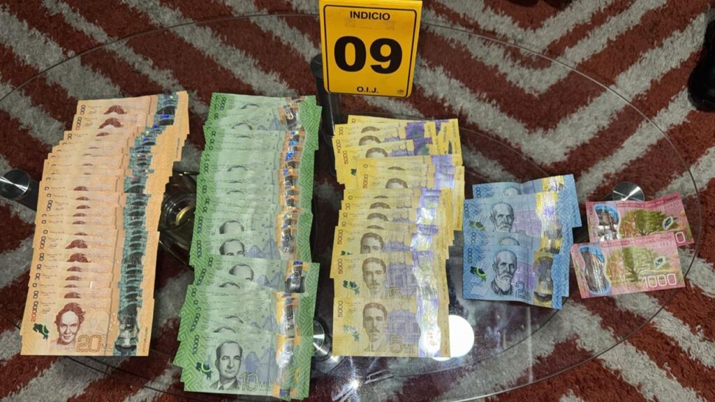 Durante el allanamiento, los agentes decomisaron 1.400.000 colones en efectivo, dinero que presuntamente corresponde a las ganancias obtenidas en el lugar.