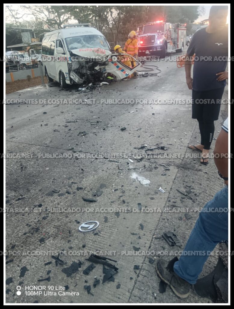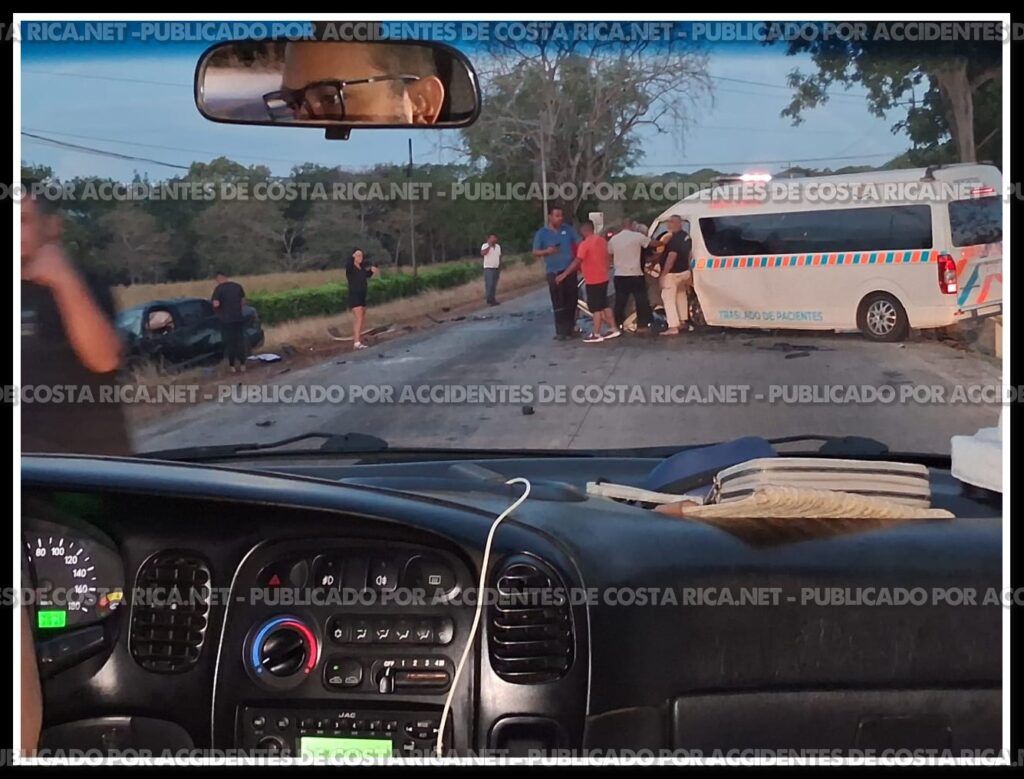 Un violento accidente de tránsito se registró la madrugada de este Viernes Santo en el sector de Las Juntas de Abangares, Guanacaste, luego de una colisión frontal entre una ambulancia privada y un vehículo liviano.