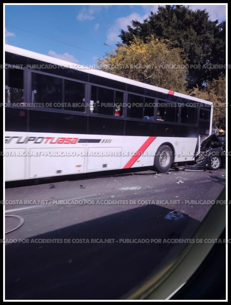 La Cruz Roja Costarricense recibió a las 2:42 p.m. de este martes el reporte de un accidente de tránsito en La Uruca, específicamente frente al INA, en el que se vieron involucrados un autobús, un vehículo liviano y un tráiler.