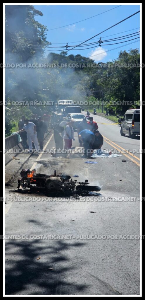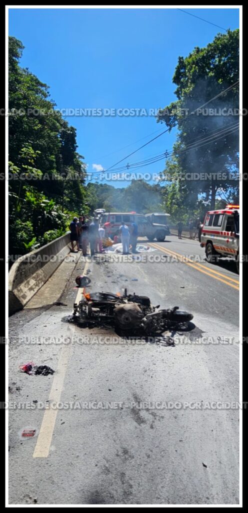 Un accidente en la ruta Uvita–Ojochal provocó que una moto se incendiara y otra cayera a un río, en un hecho que es investigado por el OIJ de Puntarenas.