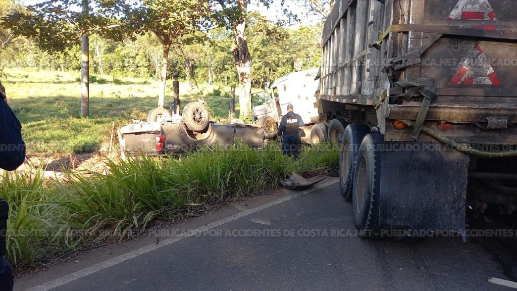 En lugar colisionaron un vehiculo de carga pesada y un pick up, el cual volco sobre si techo.