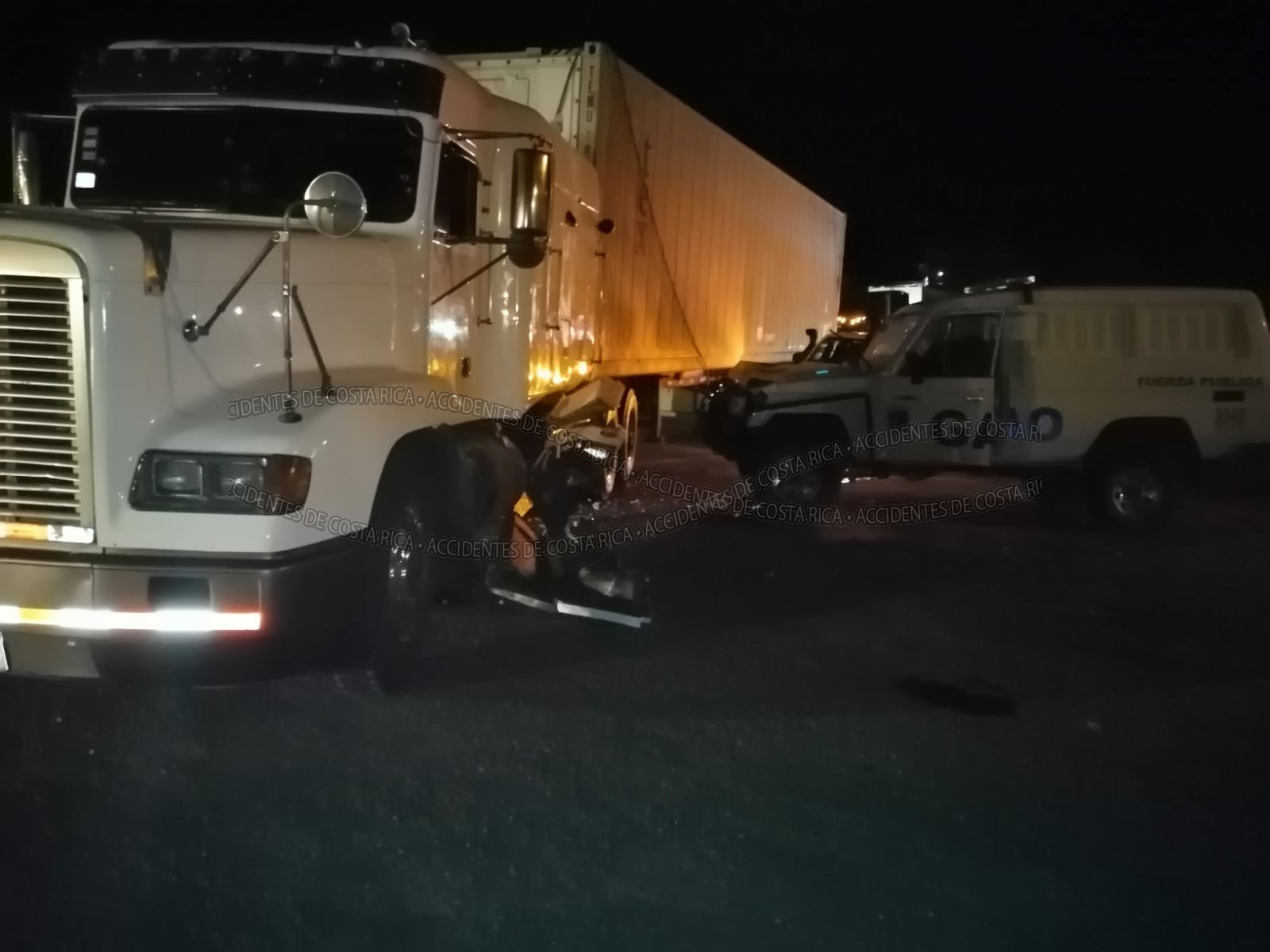 Minutos antes de las 8:00 pm se reporto una colision entre una patrulla de Fuerza Publica y un vehiculo pesado en el sector de Ruta 32, en el cruce de Herediana.