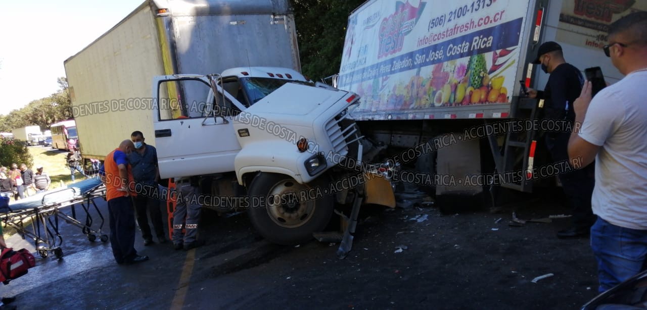Minutos despues del medio dia se reporto un aparatoso accidente entre dos vehículos pesados en La Ruta 2, a la altura del kilómetro 64. Cañon del Guarco. sentido hacia Perez Zeledon.