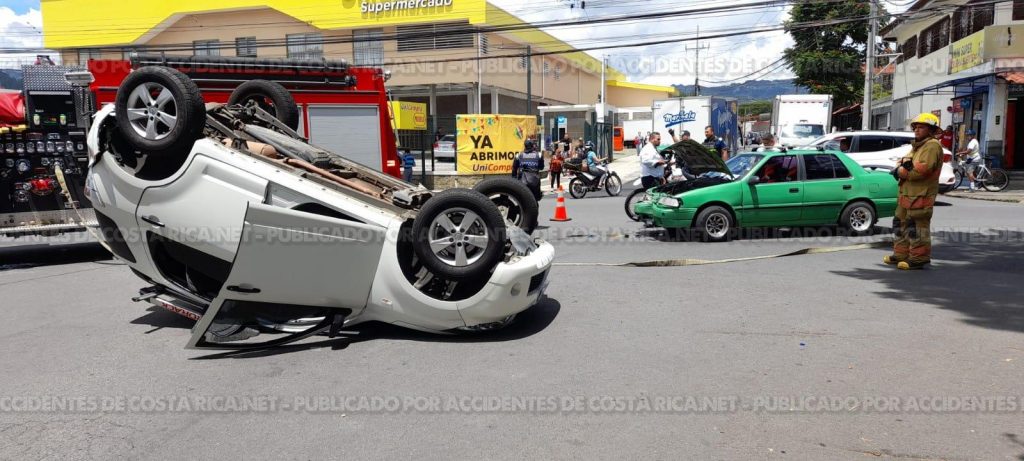 En el lugar colisionaron dos vehiculos livianos y uno de ellos termino volcado sobre su techo.