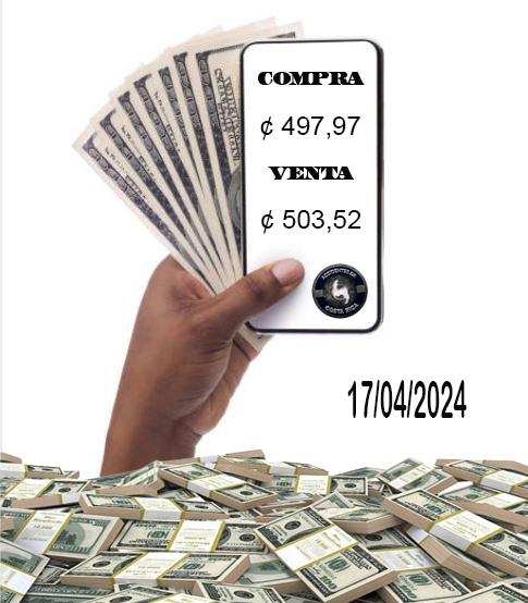 𝙋𝙤𝙧 𝘼𝙘𝙘𝙞𝙙𝙚𝙣𝙩𝙚𝙨𝙙𝙚𝙘𝙤𝙨𝙩𝙖𝙧𝙞𝙘𝙖.𝙣𝙚𝙩. Para este Miércoles 17 de Abril, el tipo de cambio del dólar en Costa Rica se ubica en ¢ 497,97 colones la compra y la venta en ¢ 503,52 colones.