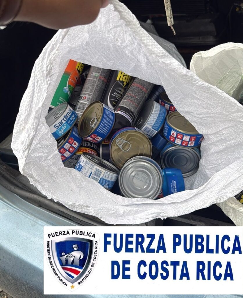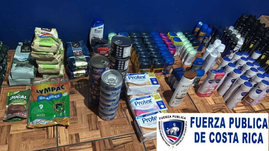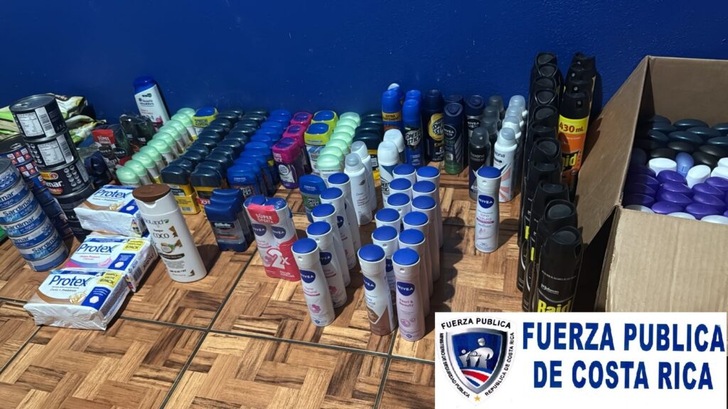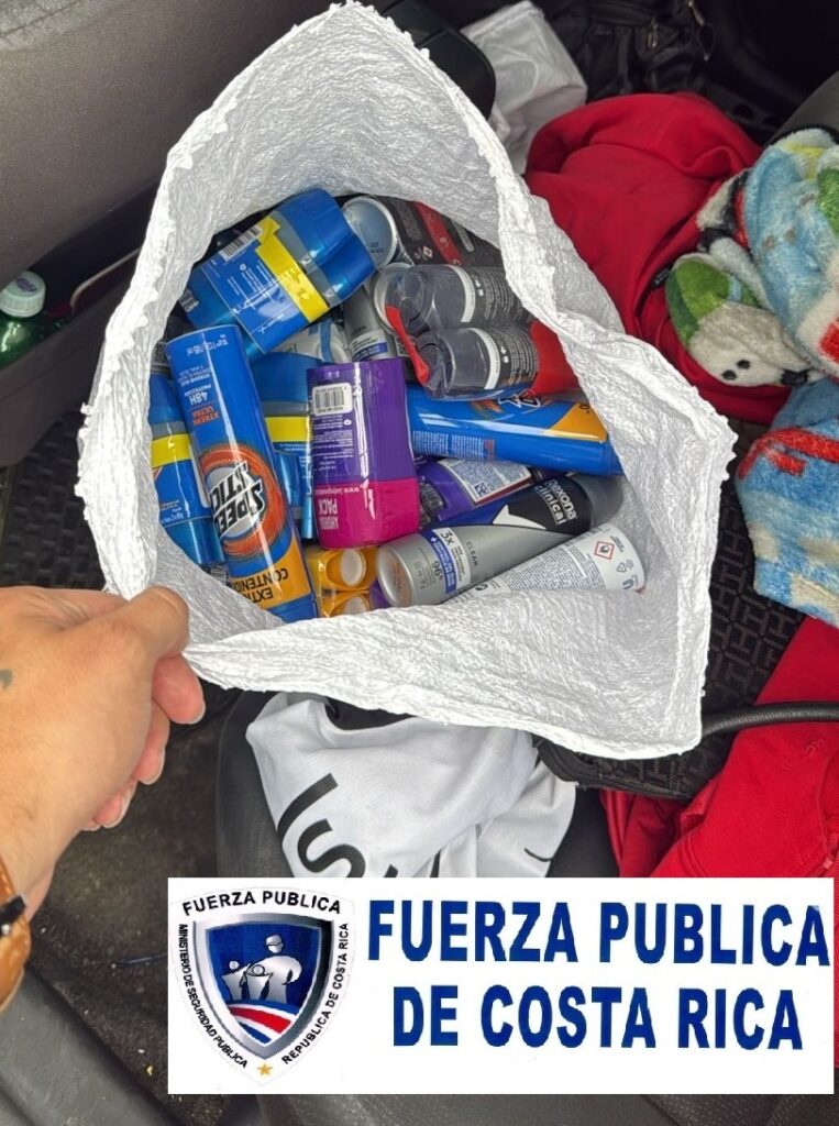 Tras revisar la cajuela del auto, los miembros de la Fuerza Pública encontraron la mercadería robada, consistente en productos de higiene personal, insecticidas y alimentos enlatados, entre otros artículos.