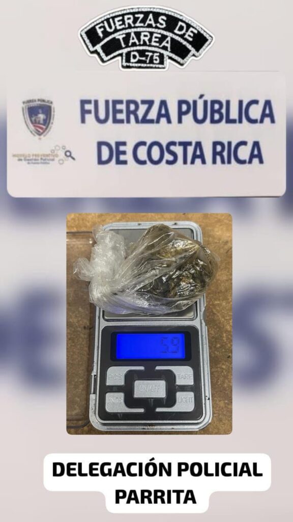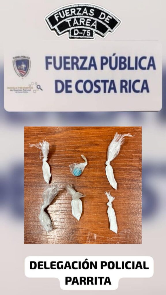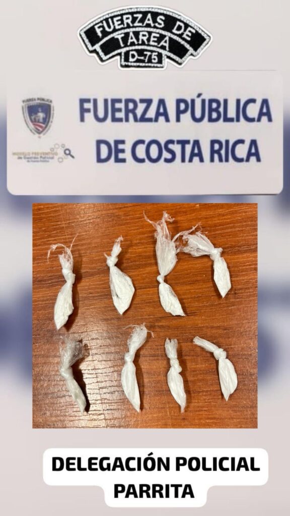 Durante la intervención, Morgan entregó voluntariamente cinco dosis de presunta cocaína y una pastilla de posible éxtasis. Fernández, por su parte, dio ocho puntas de aparente cocaína. En una revisión superficial del automóvil, los agentes observaron un arma de fuego, lo que motivó la coordinación inmediata con el Organismo de Investigación Judicial (OIJ).