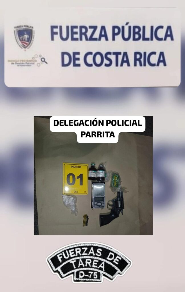 Una denuncia en el momento preciso permitió a oficiales de la Fuerza Pública de Parrita interceptar a cuatro individuos que se encontraban dentro de un automóvil con drogas y un arma de fuego. El hecho ocurrió durante un control vehicular en la entrada de Esterillos Oeste, sobre la Ruta Nacional 34.