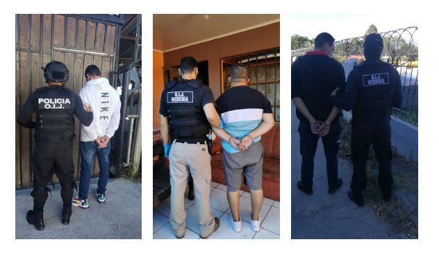05 de febrero del 2021. Agentes judiciales destacados en la Delegación Regional de Heredia, luego de investigaciones, vigilancias y seguimientos realizaron esta mañana la detención de tres hombres de 21-23 y 28 años de edad, quienes figuran como sospechosos del delito de Estafa, utilizando la información de tarjetas de débito de terceras personas.