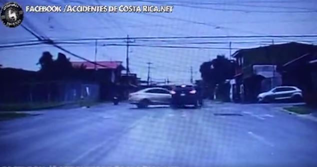??? ?????????????????????.???. Una colision entre dos vehiculos fue captada por una camara en un vehiculo el dia de ayer en Heredia, San Francisco.