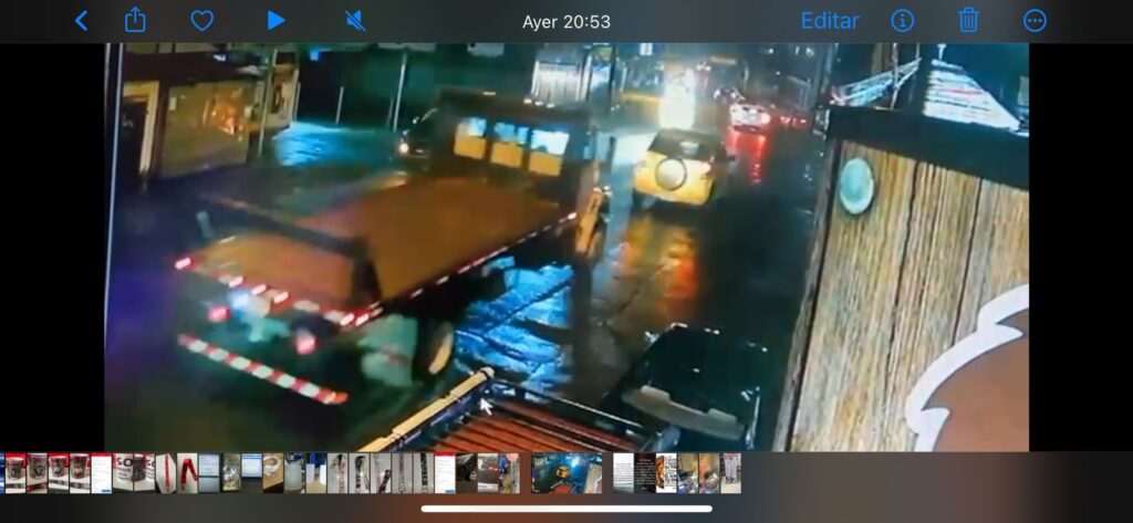𝙋𝙤𝙧 𝘼𝙘𝙘𝙞𝙙𝙚𝙣𝙩𝙚𝙨𝙙𝙚𝙘𝙤𝙨𝙩𝙖𝙧𝙞𝙘𝙖.𝙣𝙚𝙩. Una cámara de vigilancia captó el momento en que un camión colisionó con un automóvil y se dio a la fuga. El incidente ocurrió la noche del miércoles, alrededor de las 8:10 pm, cerca del Bar Fitos en Alajuelita.