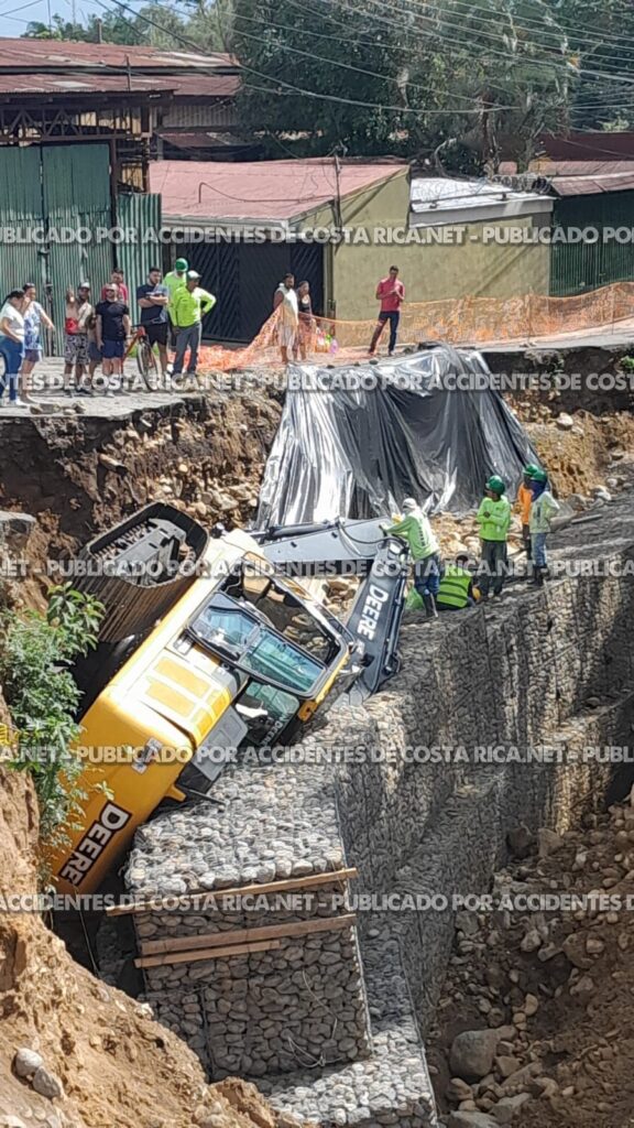 𝙋𝙤𝙧 𝘼𝙘𝙘𝙞𝙙𝙚𝙣𝙩𝙚𝙨𝙙𝙚𝙘𝙤𝙨𝙩𝙖𝙧𝙞𝙘𝙖.𝙣𝙚𝙩. Esta mañana, mientras se realizaban trabajos en las cercanías del Río Cañas en San Rafael Arriba de Desamparados, una máquina de construcción cayó al río. El incidente ocurrió durante la construcción de un muro de contención.