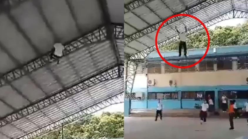El accidente, captado en impactantes imágenes que se viralizaron durante el fin de semana, muestra al estudiante colgado desde una viga del techo, antes de lanzarse desde una altura considerable. A pesar de las advertencias de sus compañeros y de una mujer presente en el lugar, el joven se soltó, aterrizando sobre sus pies pero sufriendo múltiples traumatismos y un intenso dolor en la zona cervical y lumbar.