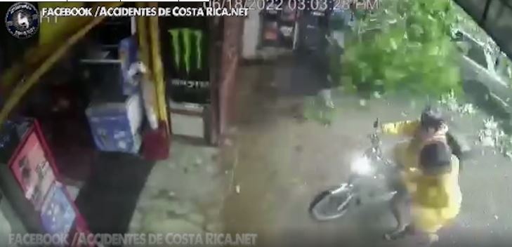 Asi se evidencia en el siguiente video, cuando los dos hombres llegan a un establecimiento comercial en Uvita de Osa, y a poca distancia un arbol cae sobre el suelo.