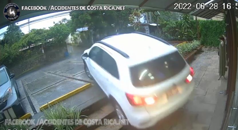 El conductor del vehiculo deja estacionado el carro en el parqueo, y en un momento dado este se pone en marcha hacia atras y choca contra la estructura.