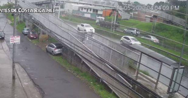 El siguiente video adjunto muestra el momento en que la grua golpea con su brazo el peatonal, inmediatamente este cede y cae sobre dos vehiculos livianos.