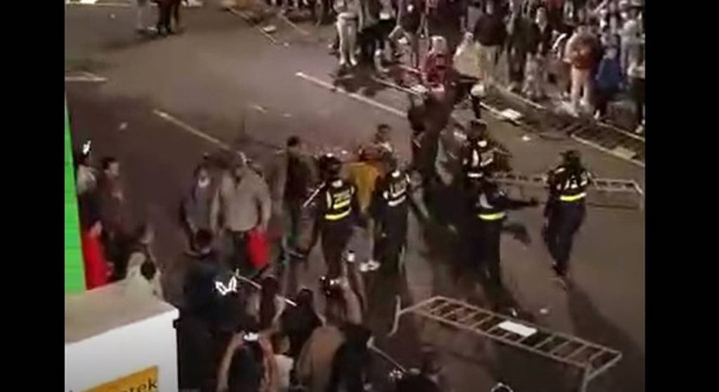 ??? ?????????????????????.???. Los videos muestran el momento en que varias personas interrumpen en forma violenta y quitan las varandas o rejas en medio del desfile de las carrozas.