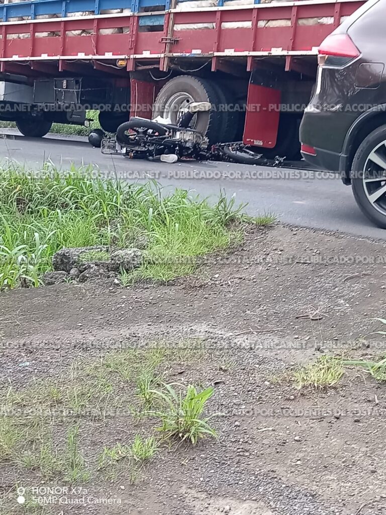 Según las primeras versiones, la mujer viajaba en una bicimoto y resbaló, cayendo desafortunadamente en la piña de llantas de un camión ganadero. La Cruz Roja de Aguas Zarcas llegó al lugar, pero no se pudo hacer nada para salvar la vida de la mujer.