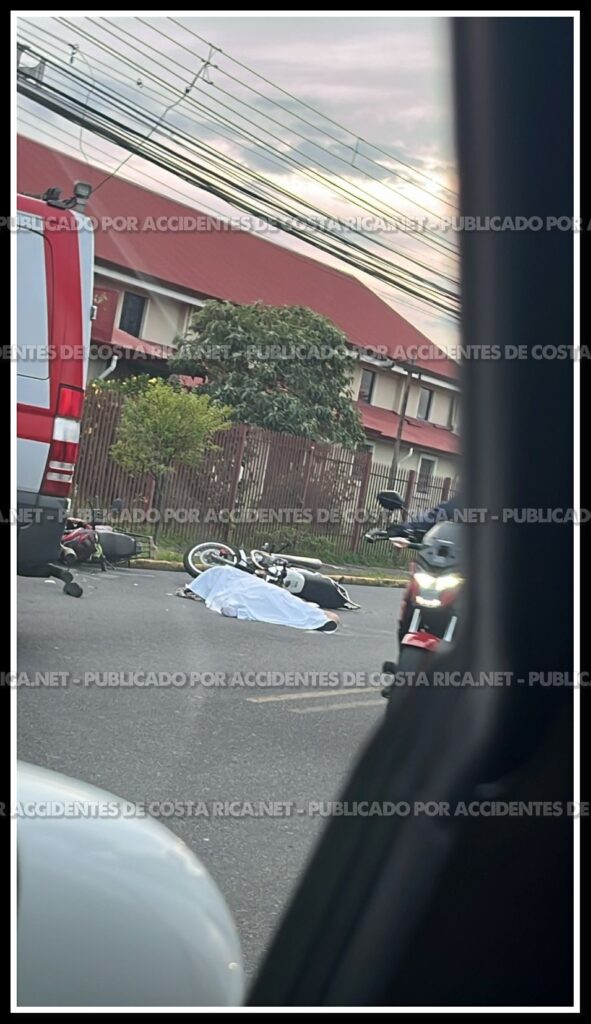Un accidente de tránsito entre dos motocicletas y un tráiler fue atendido la tarde de este lunes en Cinco Esquinas de Tibás, donde se confirmó el fallecimiento de un hombre que viajaba a bordo de una motocicleta.