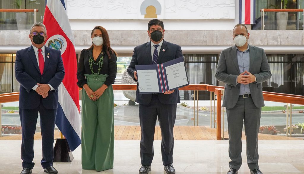 La tarde de este lunes, se firmó en Casa Presidencial, la ley 10 178 que regula de manera oficial el uso del pabellón nacional, la bandera y el escudo de Costa Rica.