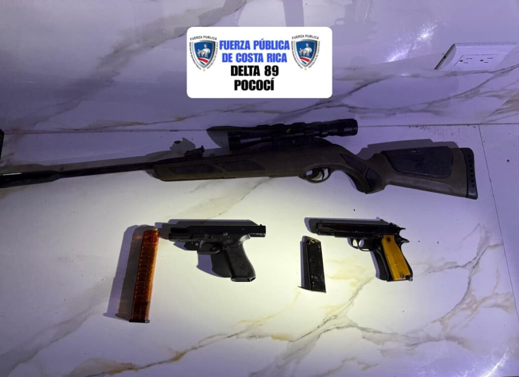 Operativo policial en Pococí permitió el decomiso de tres armas de fuego y la detención de dos individuos con expedientes delictivos