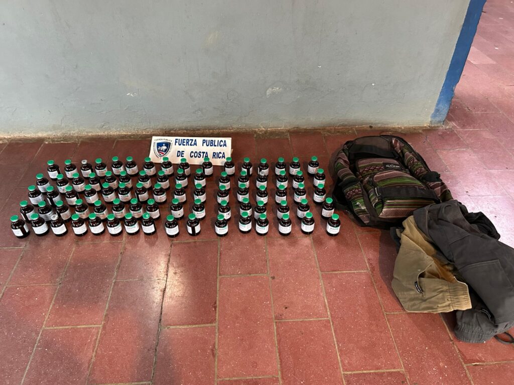 Oficiales de la Fuerza Pública, destacados en el distrito de Cuajiniquil del cantón Santa Cruz, Guanacaste, detuvieron a una persona menor de edad, costarricense, quien viajaba en un autobús con 80 frascos de ketonal.