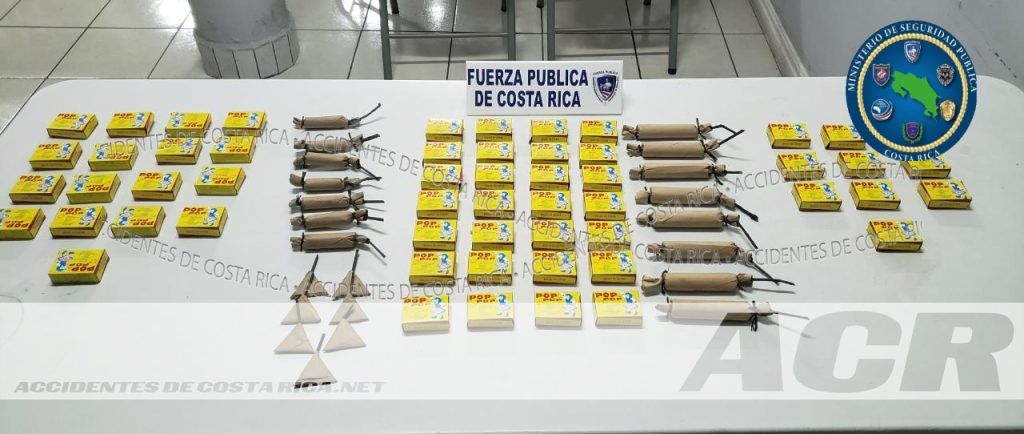 También, en pleno centro de la capital la Fuerza Pública le decomisó a un hombre de apellido Arias un total de 50 cajas de espanta suegras, ocho cuartos de dinamita, siete de octavo de dinamita y siete carpetas, lo que representa más de mil unidades incautadas por la Policía.