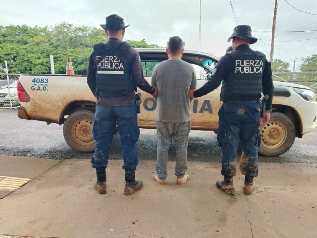 El sujeto fue detenido en el momento en que se realizaba un fuerte operativo en la zona con la participación, además de la Fuerza Pública, el Ministerio de Salud y la Policía de Migración a fin de intervenir las cuarterías clandestinas que operan en Crucitas y alrededores.
