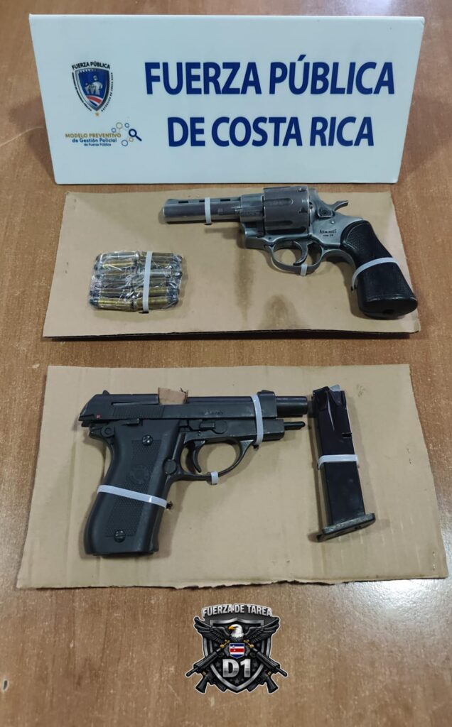 En una nueva acción desarrollada por la Fuerza Pública, a fin de prevenir delitos contra la vida y contra la propiedad, un sujeto fue detenido con dos armas de fuego, una de ellas con denuncia de robo.