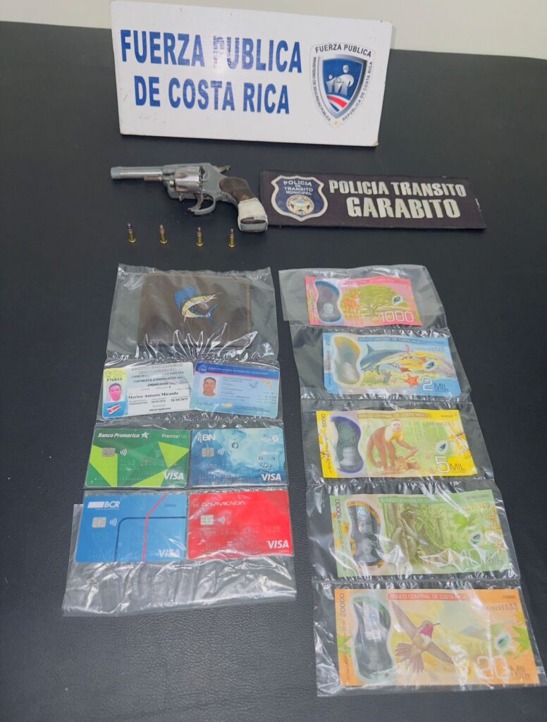 Una vez que los uniformados dieron con el paradero de los sospechosos y a uno de ellos lo ubicaron con las pertenencias de las víctimas, así como con el arma que se presume usó para cometer el delito, ambos ofendidos los identificaron y se apersonaron a la Fiscalía de Garabito para colocar la respectiva denuncia.