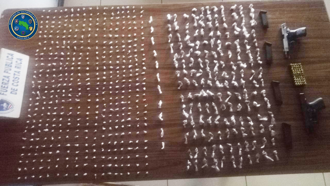 La Fuerza Pública del distrito de Pavas, provincia de San José, logró el hallazgo de dos armas de fuego y gran cantidad de droga en el techo de una vivienda.