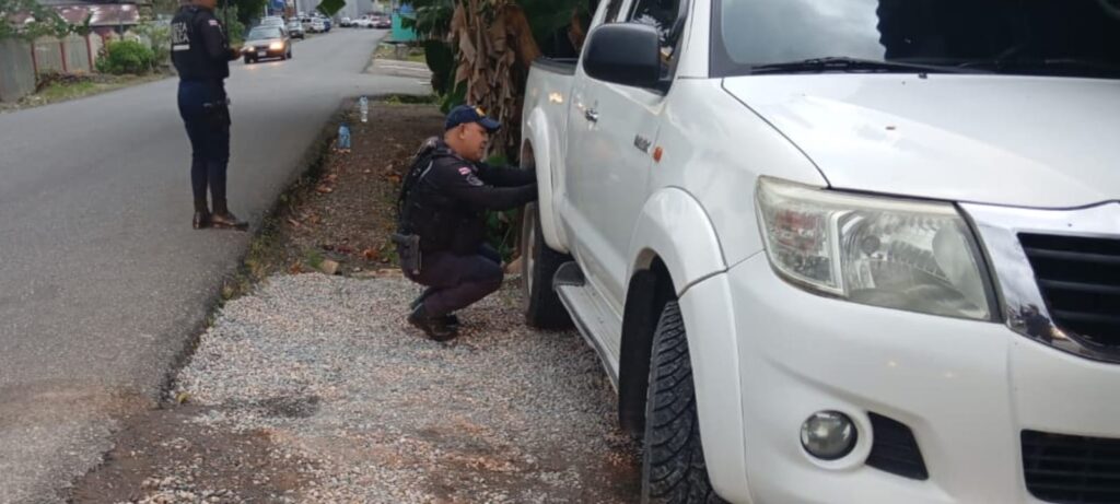 Al llegar al sitio, los oficiales observaron que el vehículo carecía de placas y de los distintivos correspondientes.