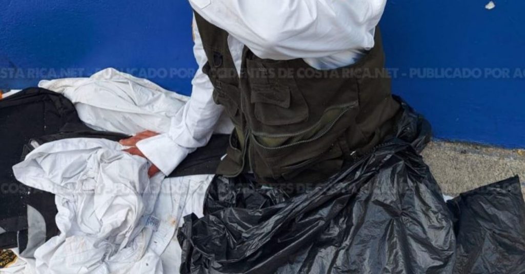 ??? ?????????????????????.???. Esta mañana las autoridades policiales detectaron en el centro de San José ,a un costado de los Tribunales de Justicia, a una persona habitante de la calle con uniformes presuntamente originales de la Policía de tránsito , los cuales se encontraban en bolsas negras de basura.