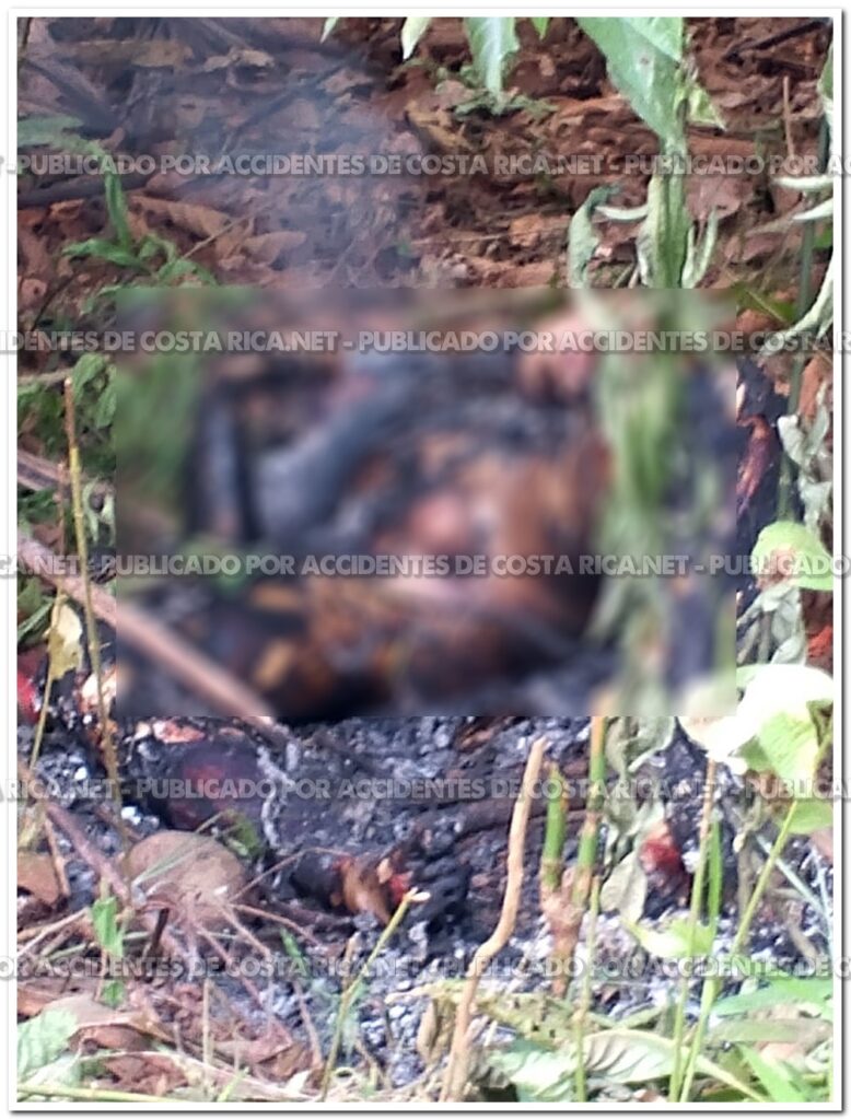 𝙋𝙤𝙧 𝘼𝙘𝙘𝙞𝙙𝙚𝙣𝙩𝙚𝙨𝙙𝙚𝙘𝙤𝙨𝙩𝙖𝙧𝙞𝙘𝙖.𝙣𝙚𝙩. Agentes judiciales confirmaron el hallazgo de un presunto cuerpo calcinado este domingo en el sector de Santa Rosa, en Limón, luego de recibir una llamada a las 10:19 de la mañana en la que vecinos alertaban sobre una figura sospechosa en la zona.
