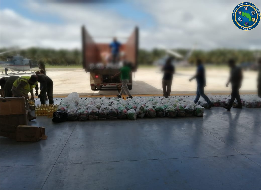 El personal del Servicio de vigilancia Aérea (SVA) del Ministerio de Seguridad Pública realizó, en los helicópteros MSP-026 y MSP-028 del Programa de Aviación de los Estados Unidos de América en Costa Rica; el traslado de víveres para las personas que se vieron afectadas tras la tormenta ETA.