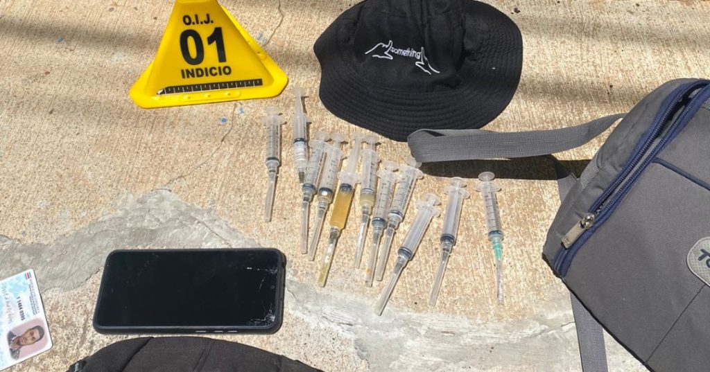 Cabe indicar, que la detención de este individuo se realizó en vía pública en el sector de Bajo los Molinos en San Rafael de Heredia y se le decomisó un total de 11 jeringas, donde tres contenían algún tipo de líquido, por loque fueron remitidas a los laboratorios de ciencias forense para que se les realicen los respectivos análisis.