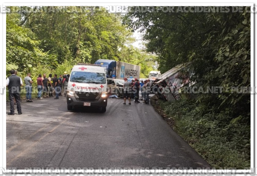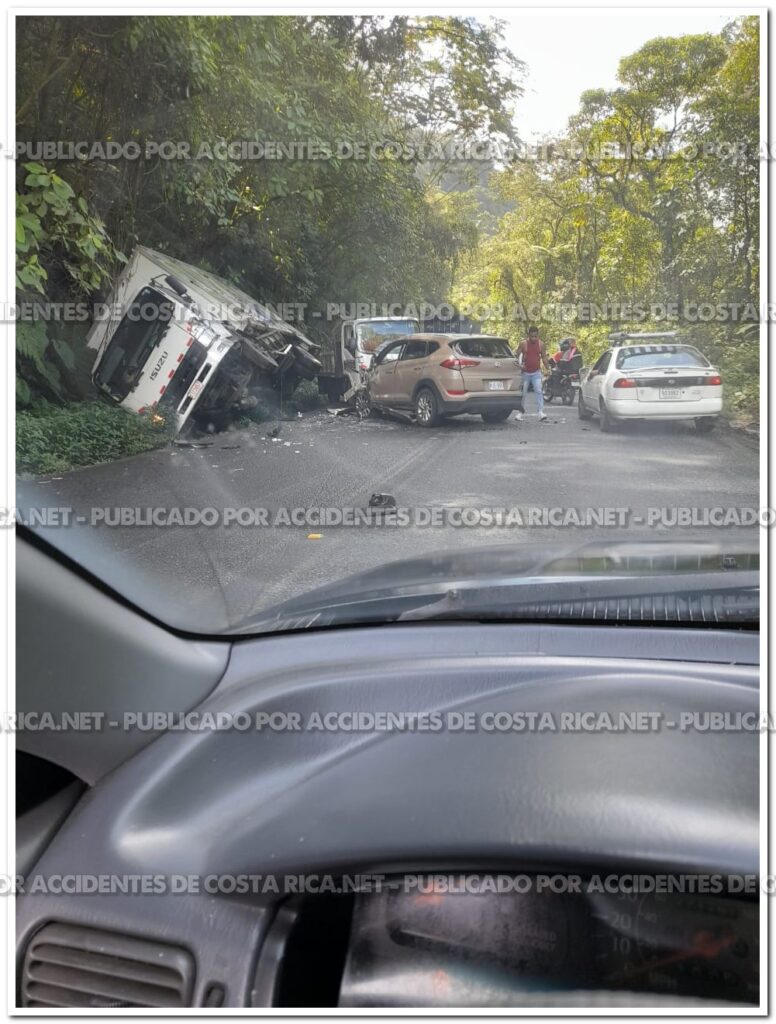 𝙋𝙤𝙧 𝘼𝙘𝙘𝙞𝙙𝙚𝙣𝙩𝙚𝙨𝙙𝙚𝙘𝙤𝙨𝙩𝙖𝙧𝙞𝙘𝙖.𝙣𝙚𝙩. Una colisión entre un vehículo liviano y dos camiones generó afectaciones este miércoles en la Ruta 32, específicamente en el kilómetro 25, cerca del Parque Nacional Braulio Carrillo. El accidente se reportó en sentido hacia Guápiles, aproximadamente cinco kilómetros después del túnel Zurquí.