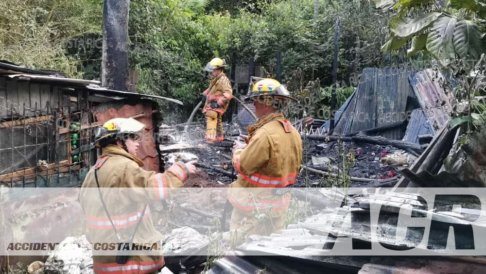 La emergencia reportada pasada la 2:30 pm fue atendida detrás de la antigua escuela vieja , donde una vivienda de 40 metros cuadrados de construcción resultó con daños en un 100 % según el cuerpo de Bomberos que atendió el incidente.